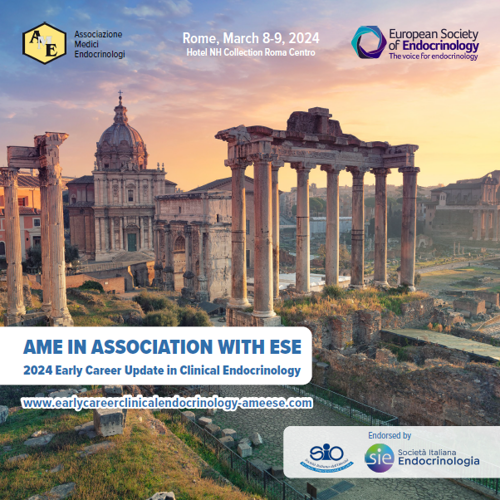 ESE is delighted to announce a new initiative with the Italian Association of Clinical Endocrinologists (AME). AME is holding, in association with ESE, a clinically oriented update in endocrinology tailored for early career endocrinologists. The event, which will be held in Rome on 8-9 March 2024, will be an enriching experience, offering valuable insights and fostering collaboration among emerging professionals in the field. Each topic of the program will start with a clinical case presentation by a young endocrinologist. The case will introduce a comprehensive in-depth discussion, featuring an expert speaker who will provide insights into the topic. The atmosphere will be stimulating and friendly, encouraging open dialogue and exchange of knowledge from different countries.