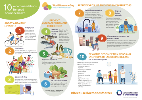For European Hormone Day 2023, ESE and the ESE Foundation published an annex to the Milano Declaration, which was shared the year before. 10 Recommendations for Good Hormone Health complements the call to put hormones at the heart of health policy in Europe, with simple actions each of us can take to ensure better hormone health.