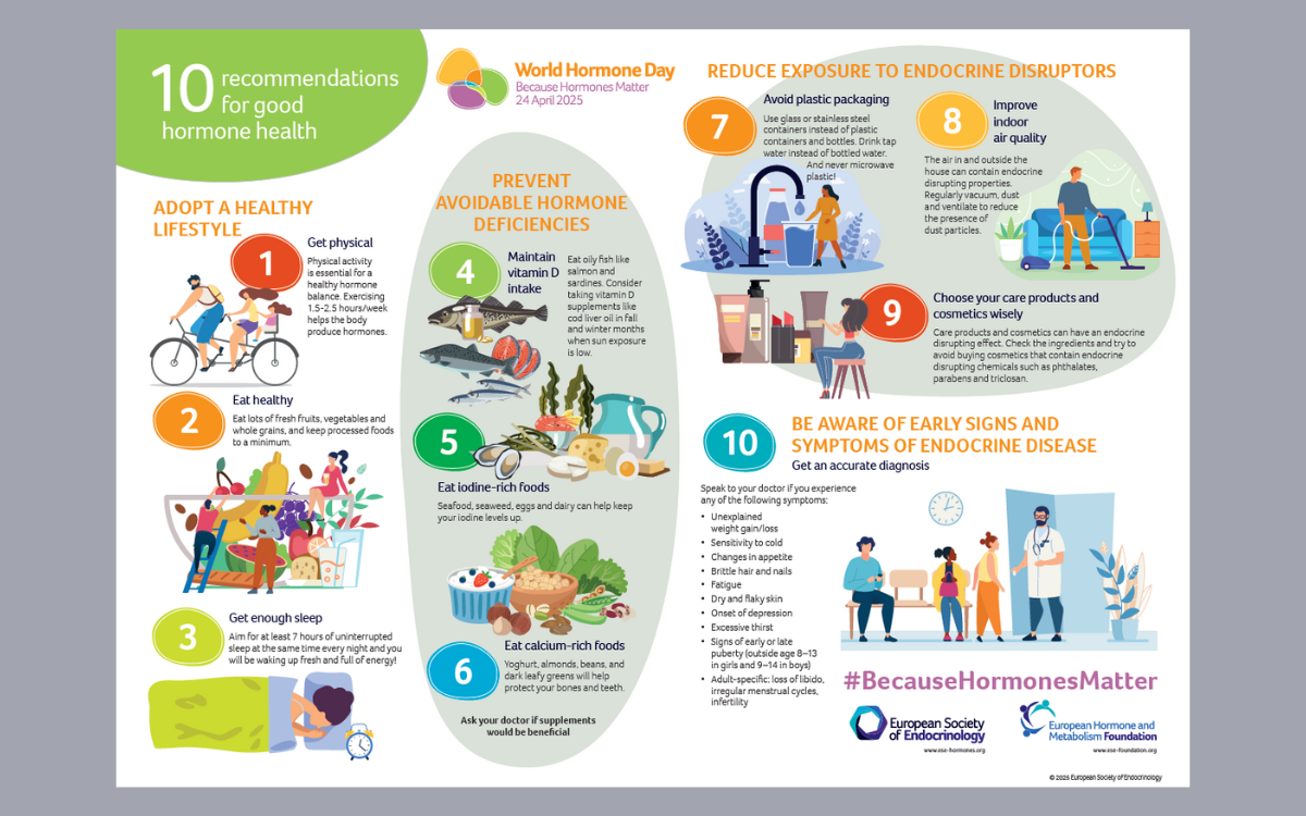 - Join in the conversation on social media using the hashtags #BecauseHormonesMatter and #WorldHormoneDay. Tips here.